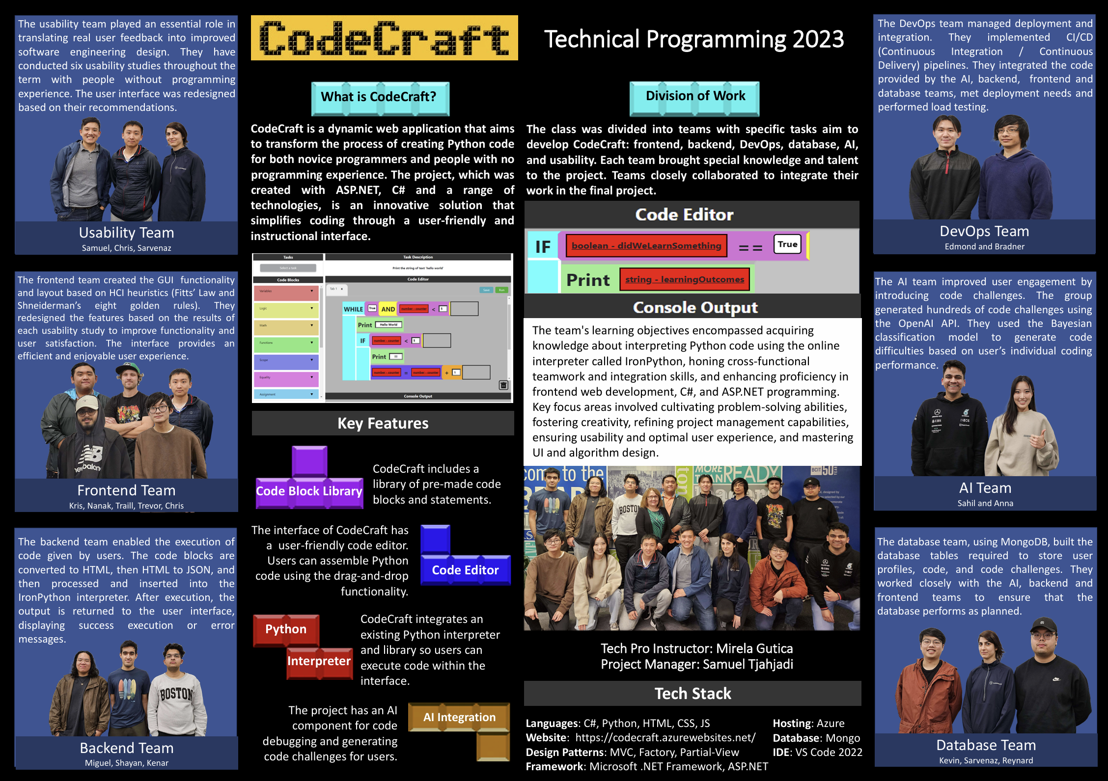 CodeCraft Web Application: https://codecraft.azurewebsites.net/ Username: 4956@test.com Password: Comp1234!
