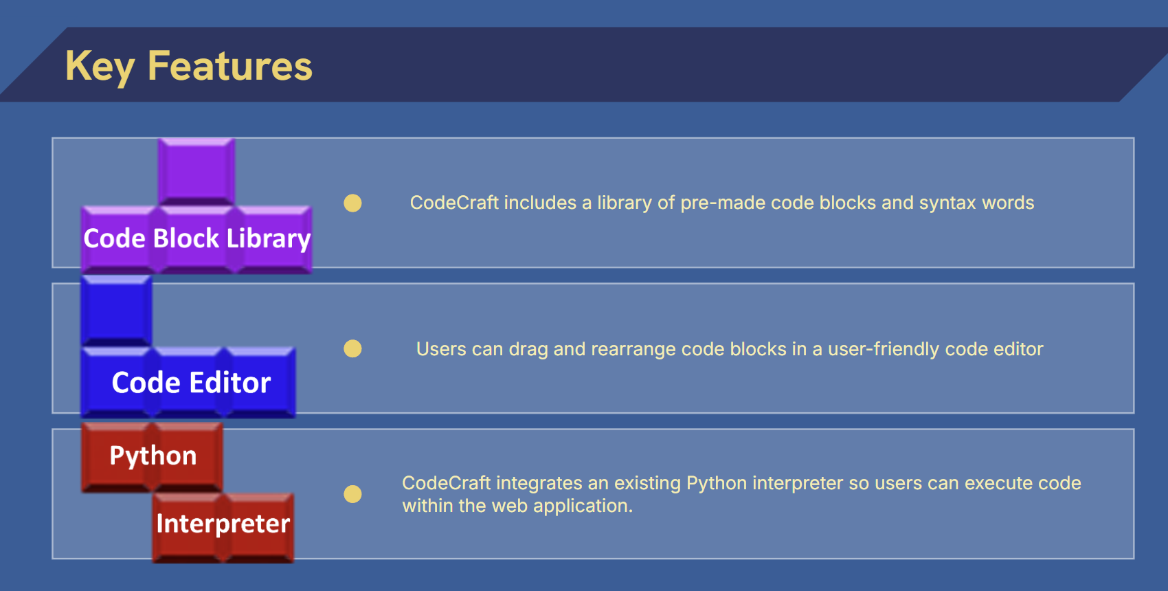 CodeCraft Presentation Slide Deck: https://docs.google.com/presentation/d/1IlA13Cm1lrEOxhMUFN7VN0AW4qz4CkmPbCJbCVWUB4M/edit?usp=sharing